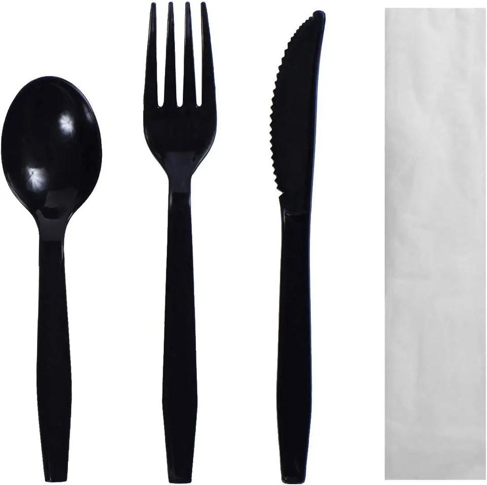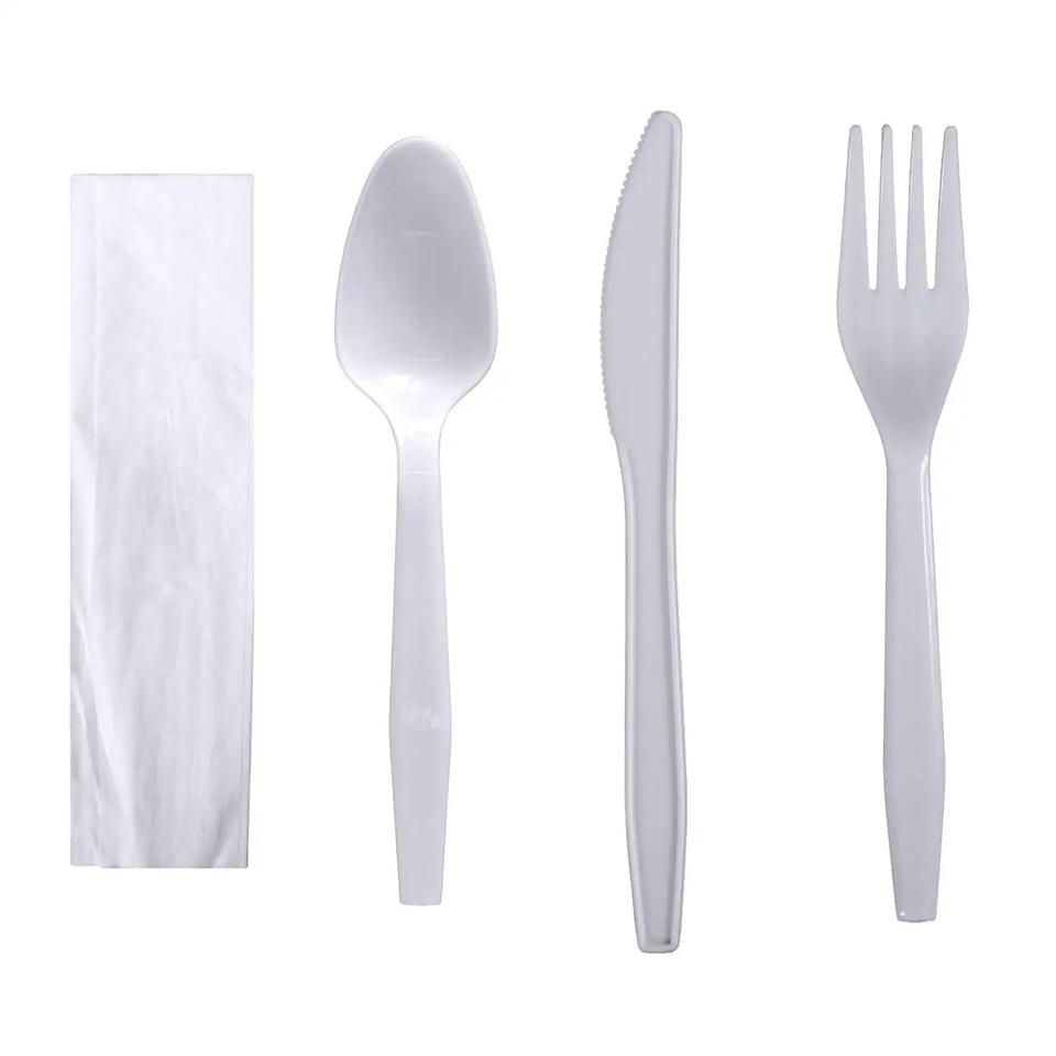 Set de cubiertos:Cuchillo + Tenedor + Cuchara + Servilleta + Sal y Pimienta