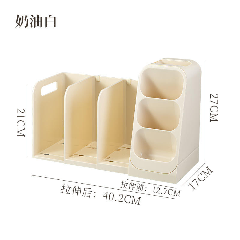 Caja de Almacenamiento de Escritorio de Plástico, Estante Telescópico para Libros, Organizador de Papelería para Mesa de Estudio, Portalápices para Dormitorio