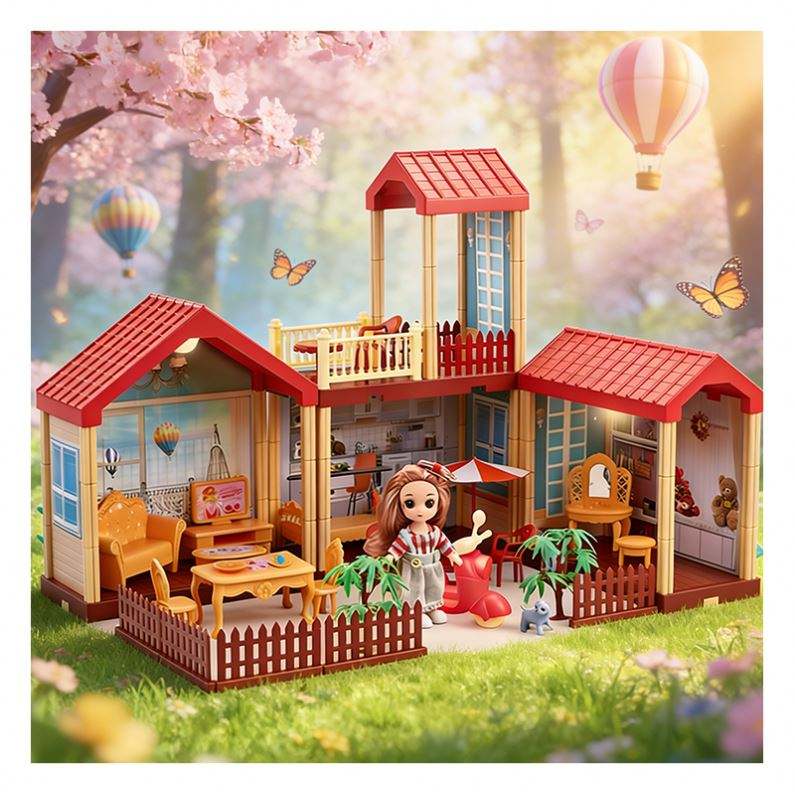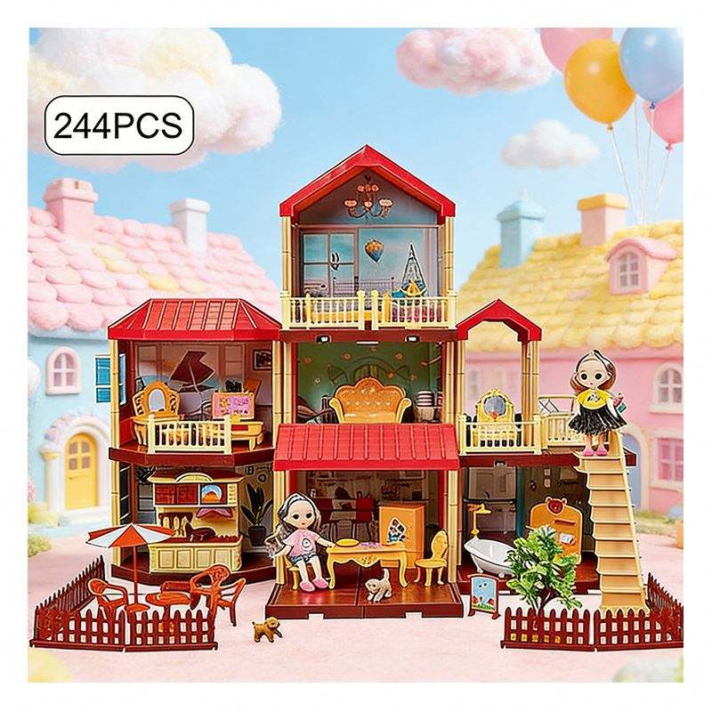 Casa de Muñecas de Plástico para Armar con Muebles, Balcón, Piscina, Tobogán, Ascensor, Juego de Imitación, Regalo Unisex de PVC