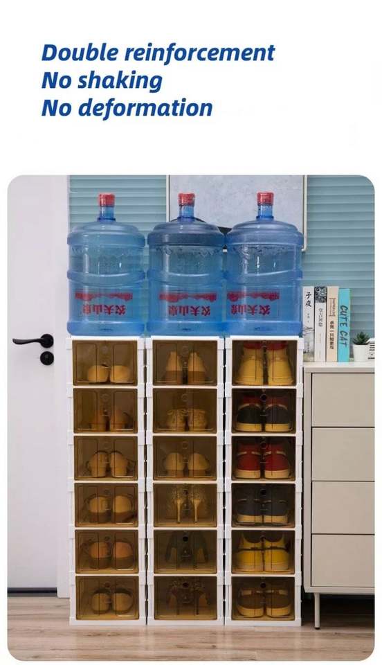 Caja plegable frontal de plástico, zapatilla de deporte transparente con imanes, cajas de zapatos de almacenamiento