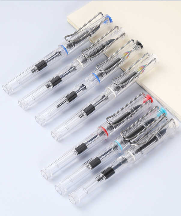 Juego de Plumas Estilográficas de Plástico con Cartuchos de Tinta Reemplazables, Pluma con Punta de Iridio Transparente, Pluma de Caligrafía para Estudiantes y Niños
