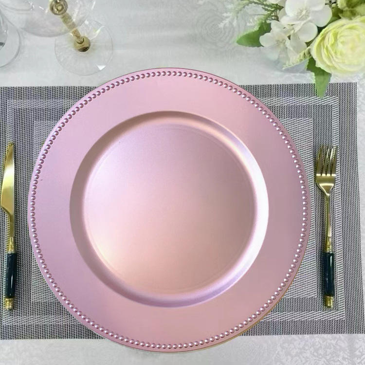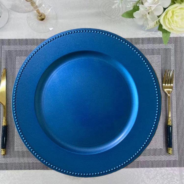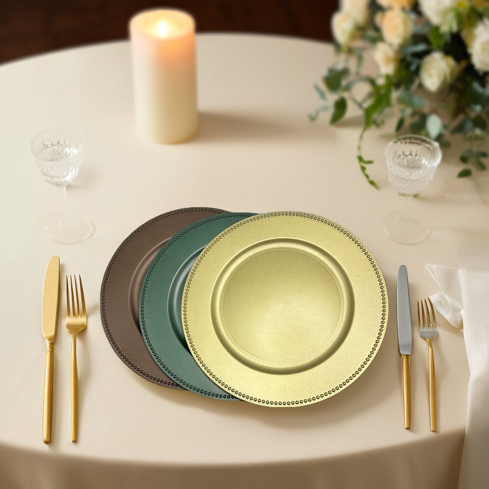 Placas de cargador de oro de plástico Placas de cargador de cuentas redondas de 13 pulgadas para decoración de mesa de boda