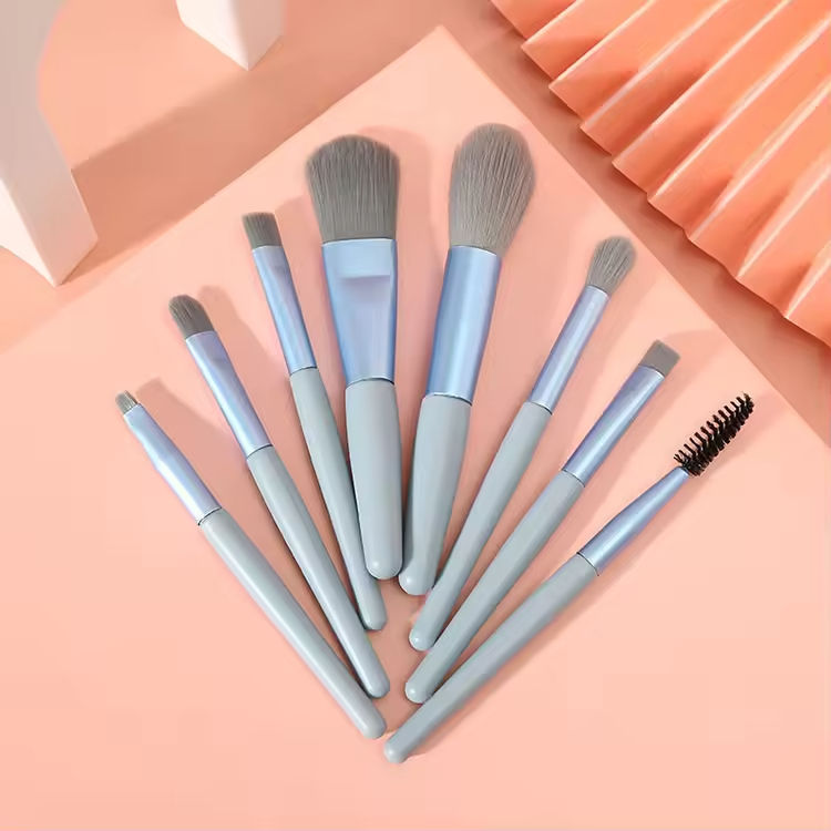 Mango de plástico portátil profesional sintético suave pelo maquillaje base pinceles de maquillaje 8 Uds juego de pinceles de maquillaje de viaje con bolsa