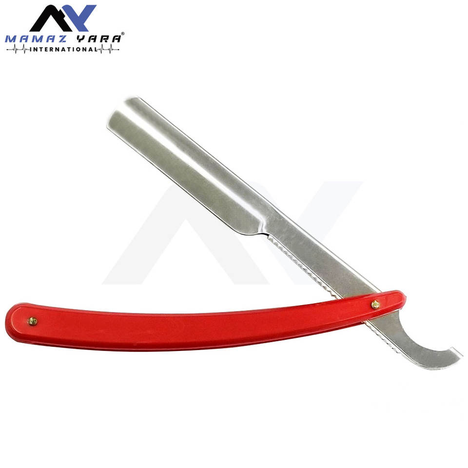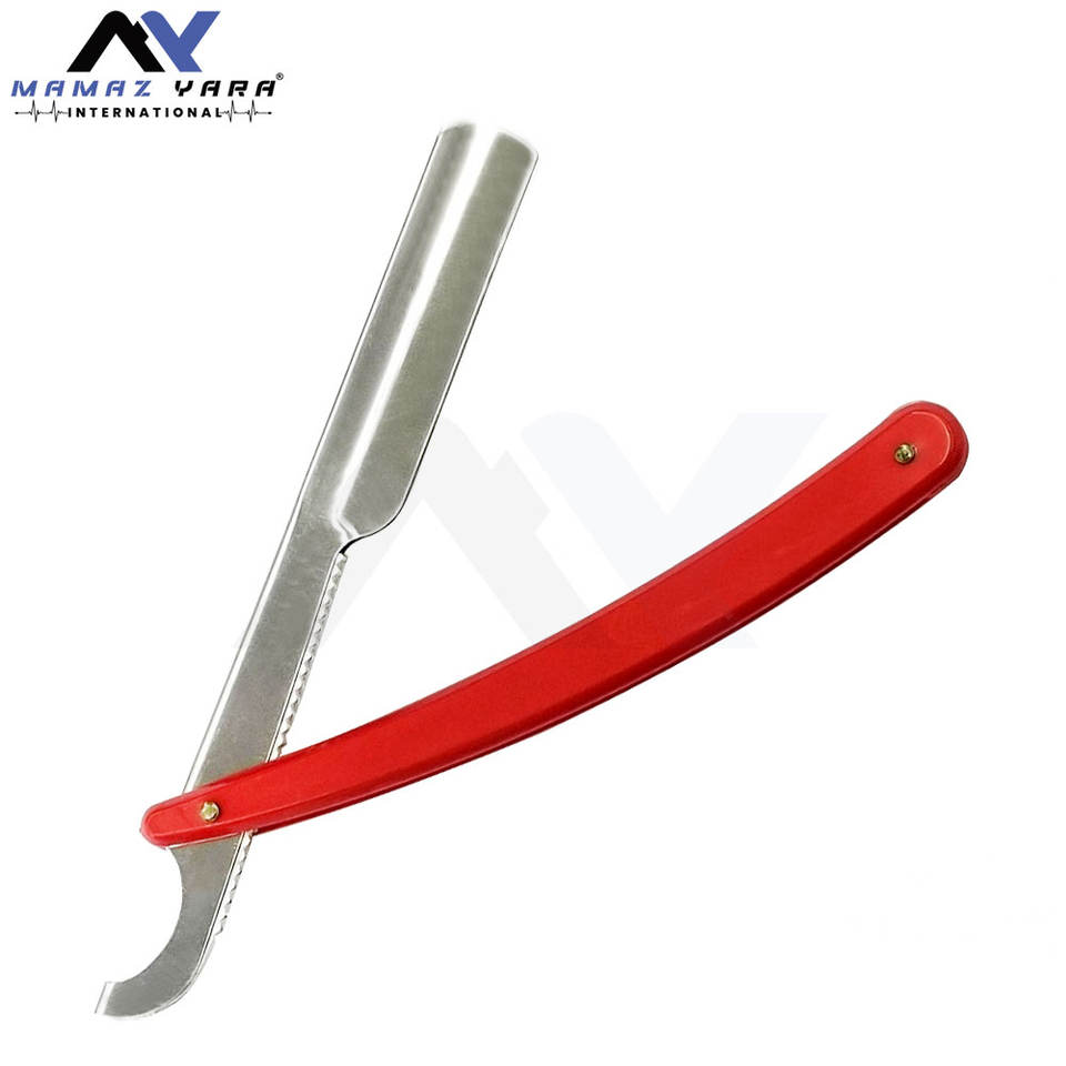 Maquinilla de afeitar recta turca con mango de plástico, cuchilla de afeitar afilada de acero inoxidable con borde recto rojo, cortadora de barba plegable