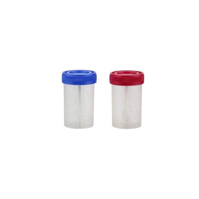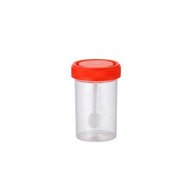Taza de muestra de prueba médica de plástico, taburete colector de muestras fecales de esputo, contenedor de orina