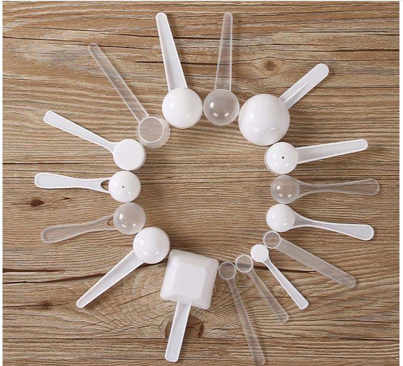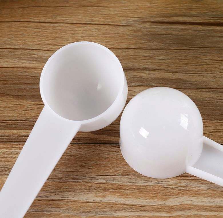 Cuchara medidora de leche en polvo de plástico con color blanco puede medir líquido y puede medir 10 gramos de peso
