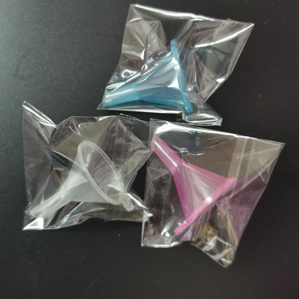 Mini funis de plástico para dispensar perfume y loción, tamaño pequeño, envases cosméticos, color azul