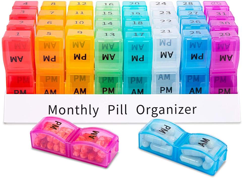 Organizador de Pastillas Mensual de Plástico, 2 Veces al Día AM/PM, Almacena Vitaminas, 31 Días, Diseño Arcoíris