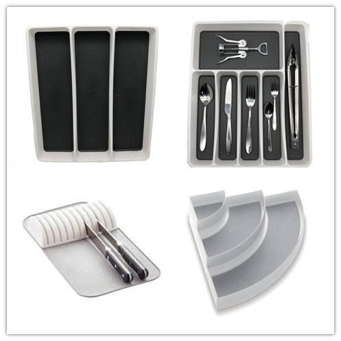 Alfombrilla de plástico segura para cuchillos en cajón con ranura de agarre suave en Color gris, soporta hasta 11 cuchillos