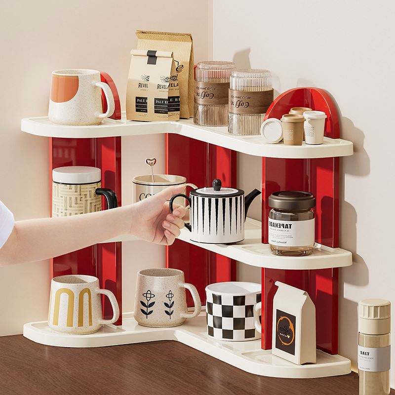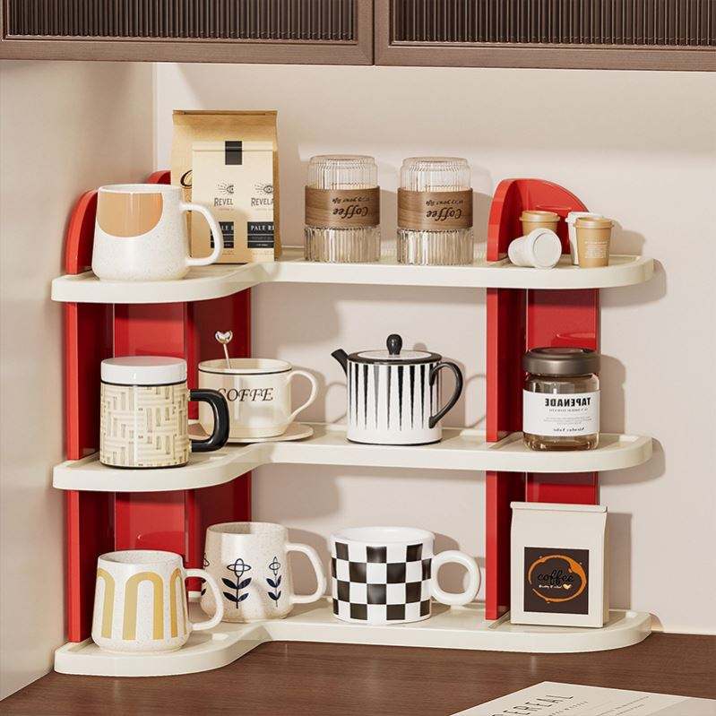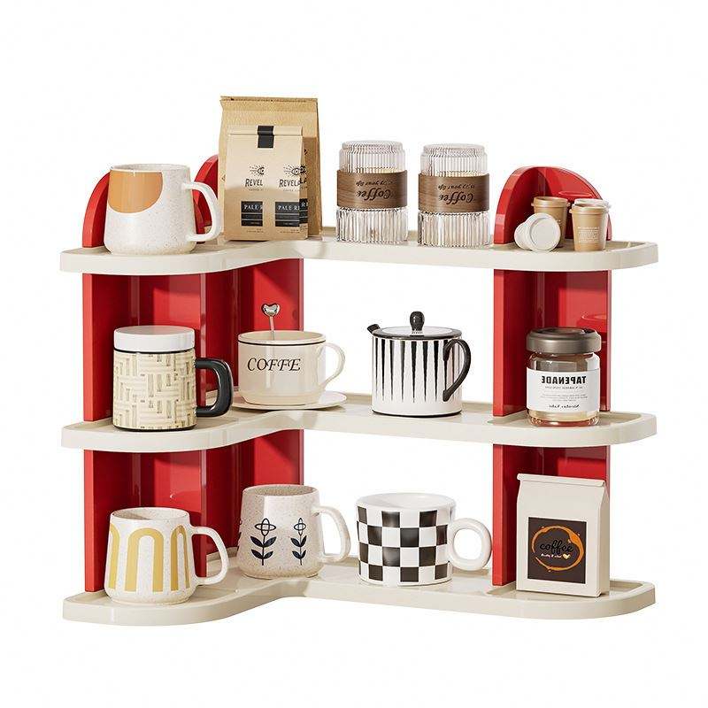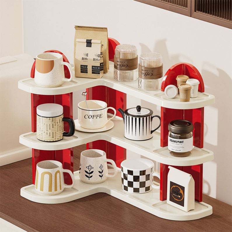 Estante de Almacenamiento de Tazas de Plástico de Tres Niveles en Forma de L, No Plegable, de Lujo Ligero, Multifuncional para Cocina