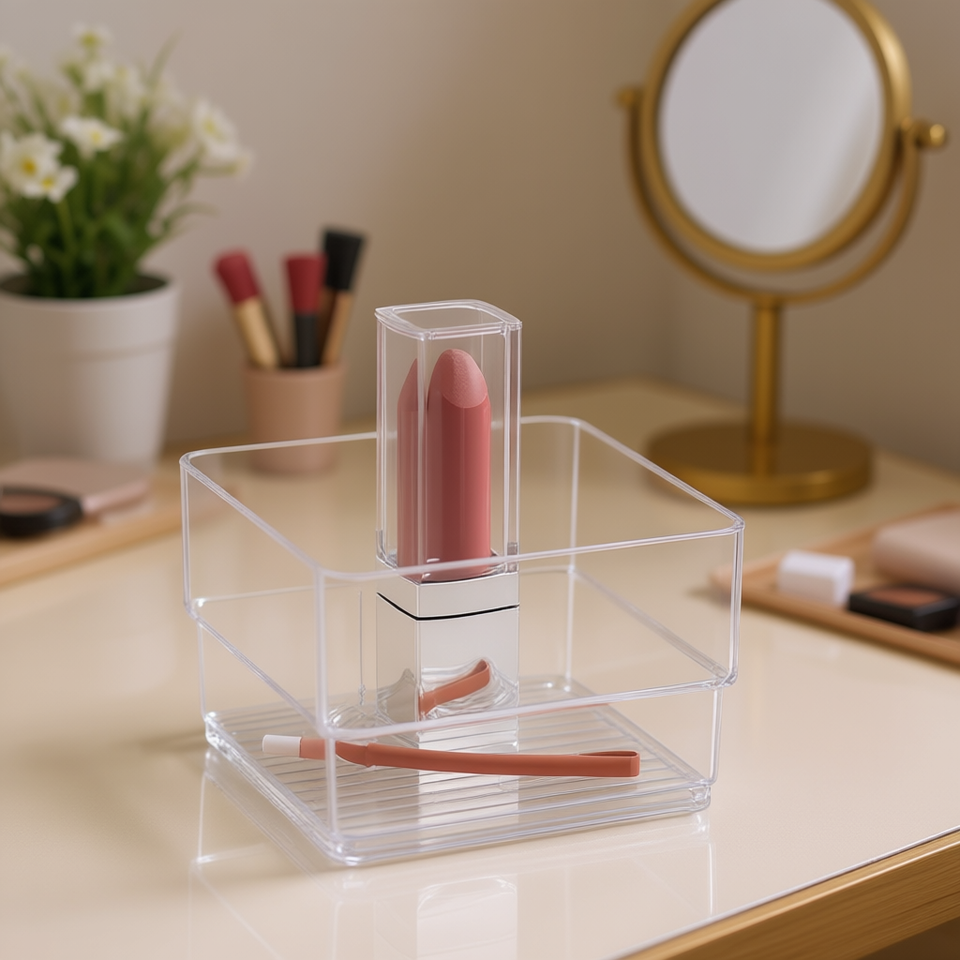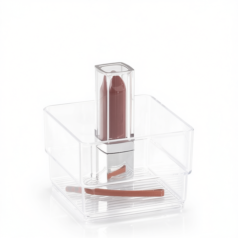 Caja organizadora de plástico para almacenamiento de maquillaje, soporte para lápiz labial, contenedor transparente N1