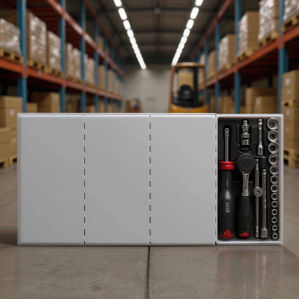 Caja de almacenamiento de plástico con organizador de herramientas para uso en logística y almacén