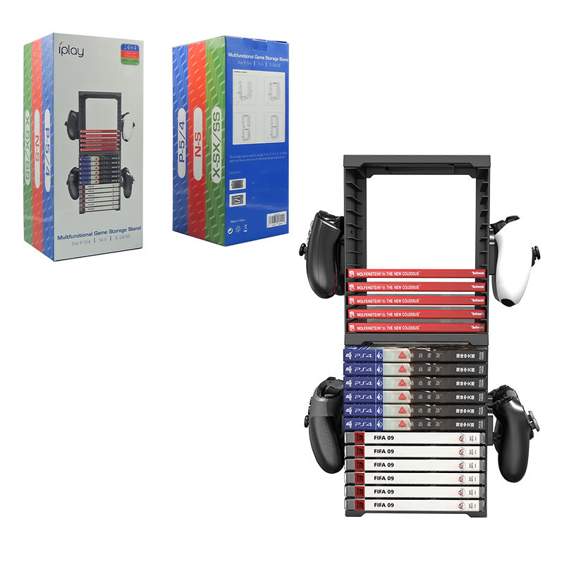 Estante de almacenamiento de plástico Soporte para PS5/PS4 Estante de almacenamiento con controlador Juegos Tarjeta Torre de almacenamiento