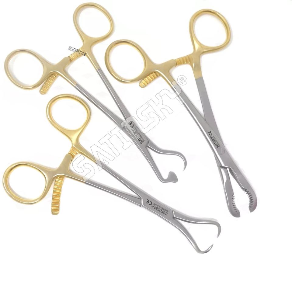 Fórceps de reducción de sujeción de hueso de placa Juego de 3 instrumentos ortopédicos quirúrgicos de acero inoxidable de grado de instrumento chapado en oro de 5,5"
