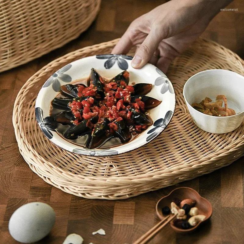Platos Vintage hechos a mano cubierta ovalada de ratán hogar cocina restaurante sobras hebilla plato tapa bandeja fruta plato soporte de exhibición Decoración