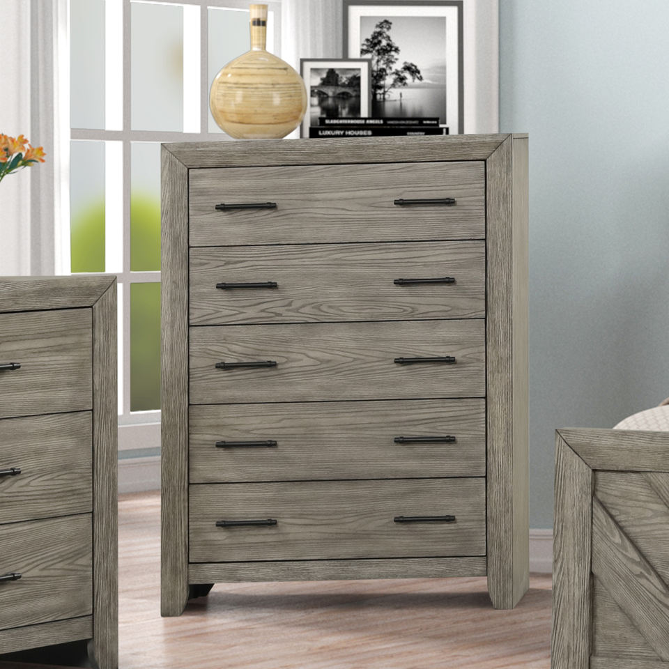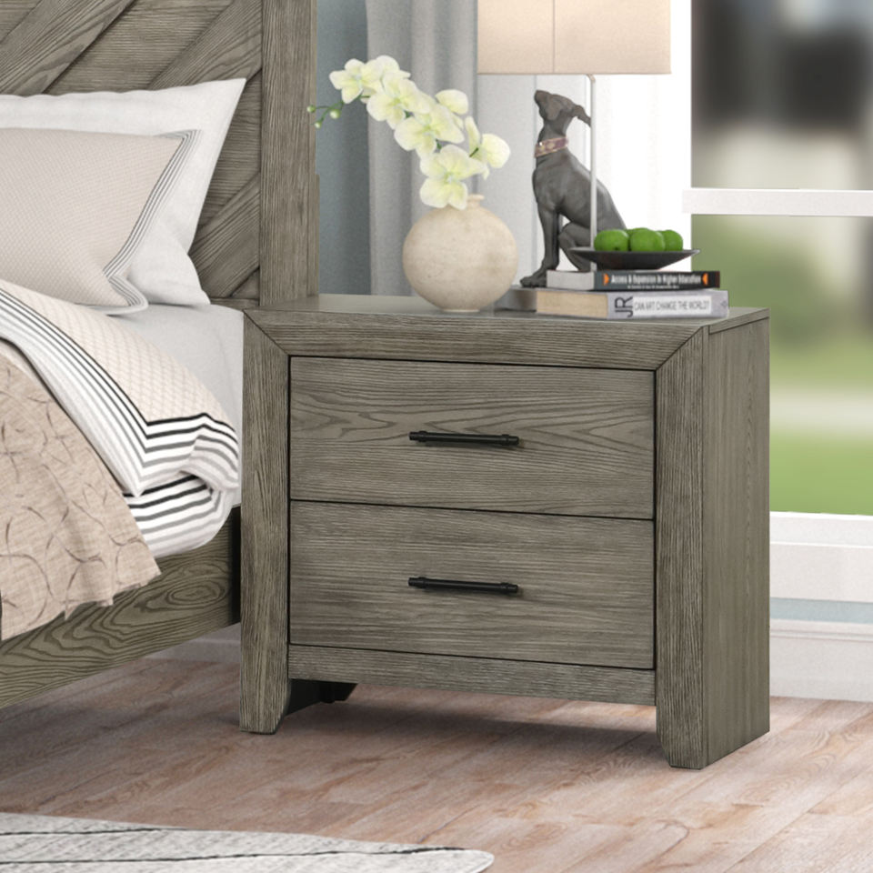 Cama con plataforma y diseño de chevron, cómoda, mesita de noche y armario para decoración rústica y contemporánea del hogar, juego de dormitorio