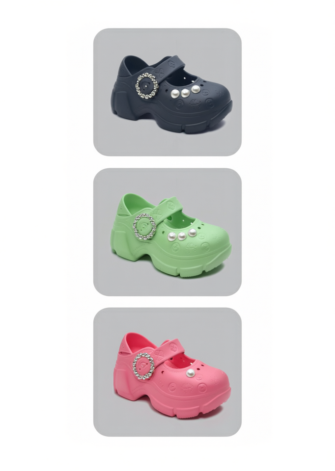 Zuecos de Plataforma con Perlas Estilo Mary Jane, Zapatos de Verano para Mujeres y Niñas, Talla 24, Parte Superior de Plástico Suave y Ligero, Entresuela de EVA