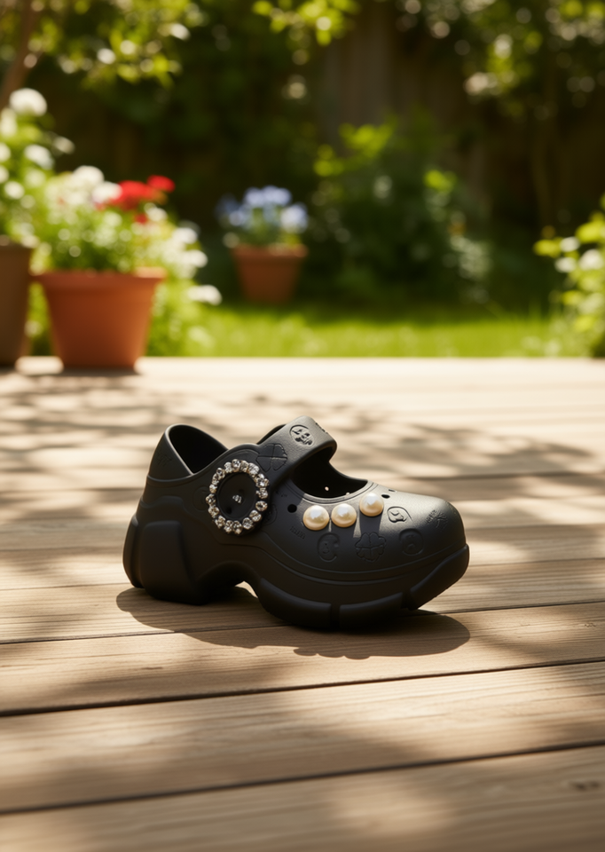 Zuecos de Plataforma con Perlas Estilo Mary Jane, Punta Cerrada, Parte Superior de Plástico Suave y Ligero, Entresuela de EVA, Talla 18