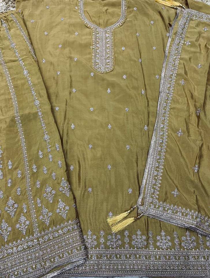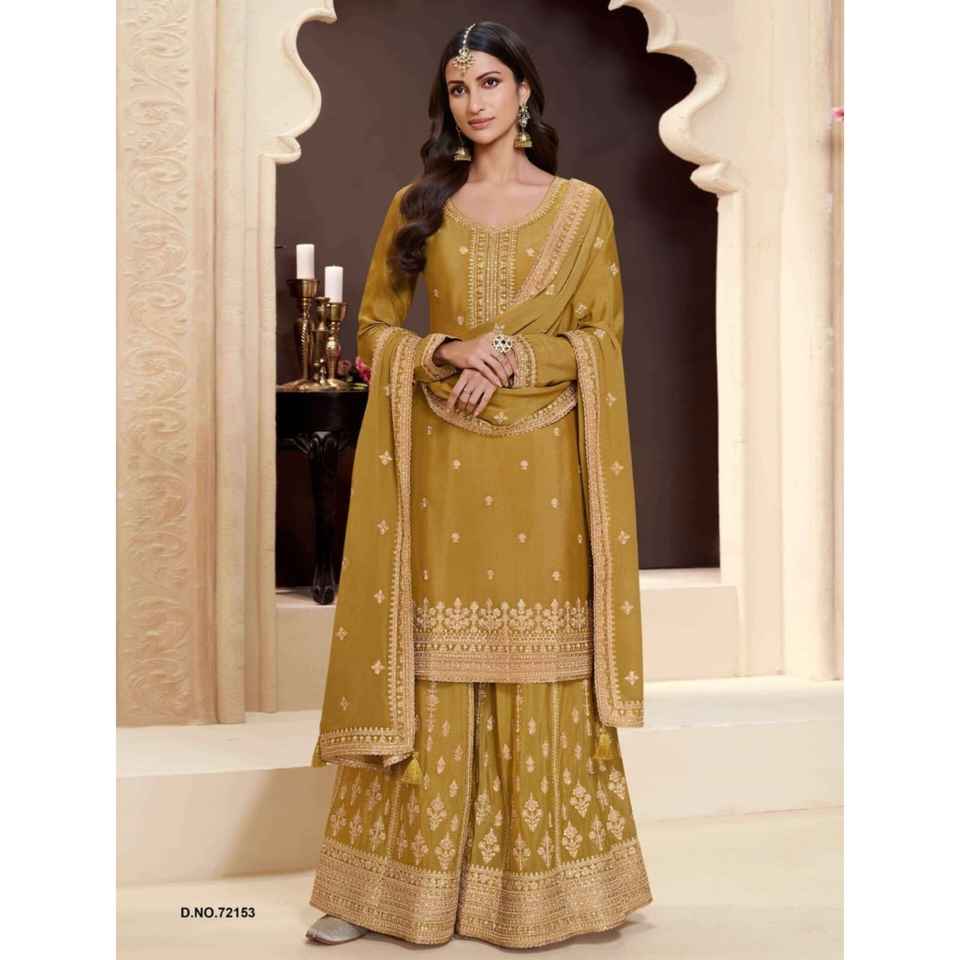 Salwar Kameez Estilo Tradicional Plazo con Bordado Intenso en Chinon y Múltiples Detalles, Talla 60, Mangas Interiores de Santoon de Secado Rápido para Fiesta