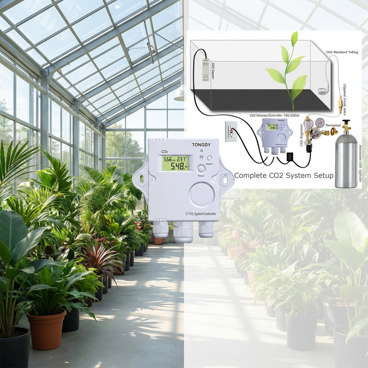 Controlador de CO2 para Invernadero, Conexión Directa, Sensor NDIR de Alta Precisión, Modo Automático Día/Noche, Certificado CE, para Cultivo de Hongos e Hidroponía