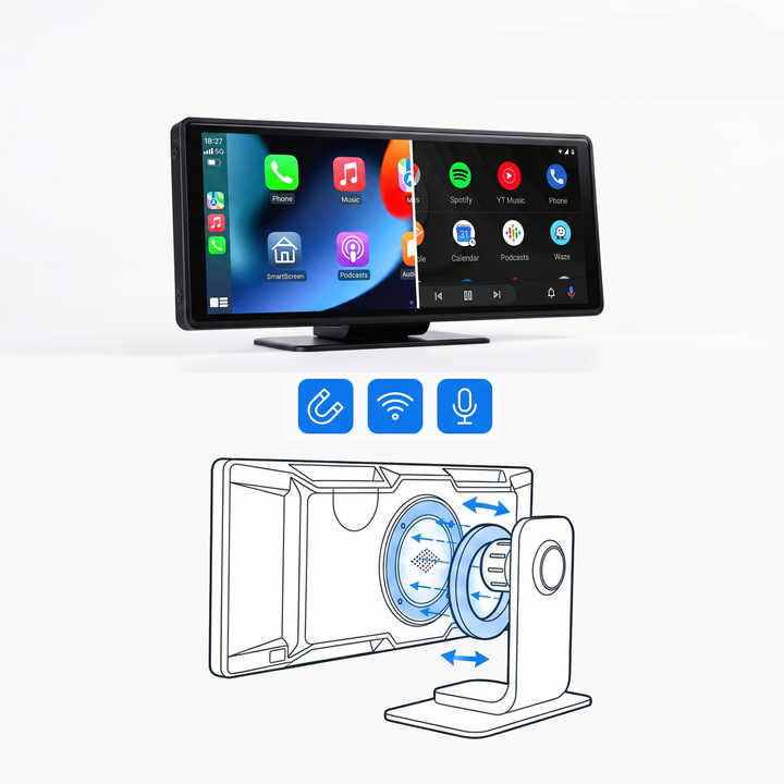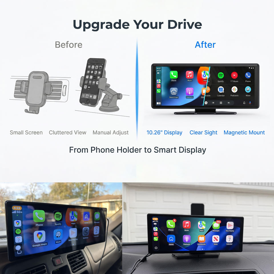 Pantalla de Navegación Inteligente para Automóvil, Conexión Plug-and-Play, Soporte Magnético, Tableta Ligera de 10.26 Pulgadas para CarPlay y Android Auto