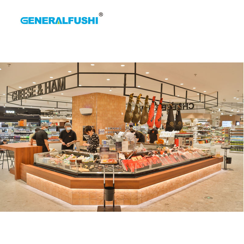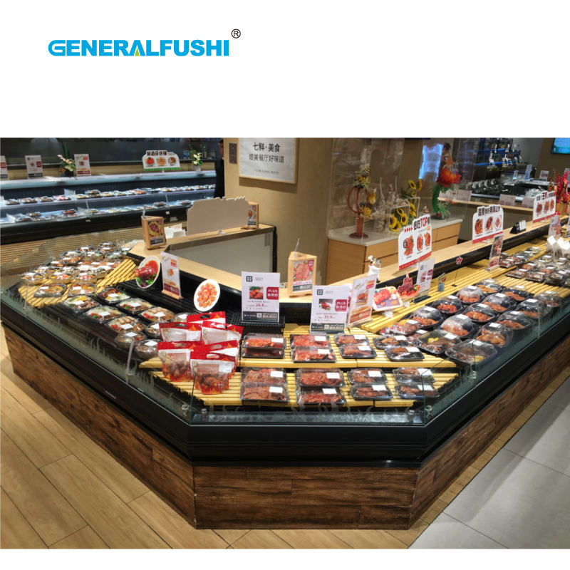 Refrigerador de exhibición de carne enchufable utilizado como refrigerador de escaparate de supermercado Refrigerador de mostrador de autoservicio para vitrina de frutas de carne