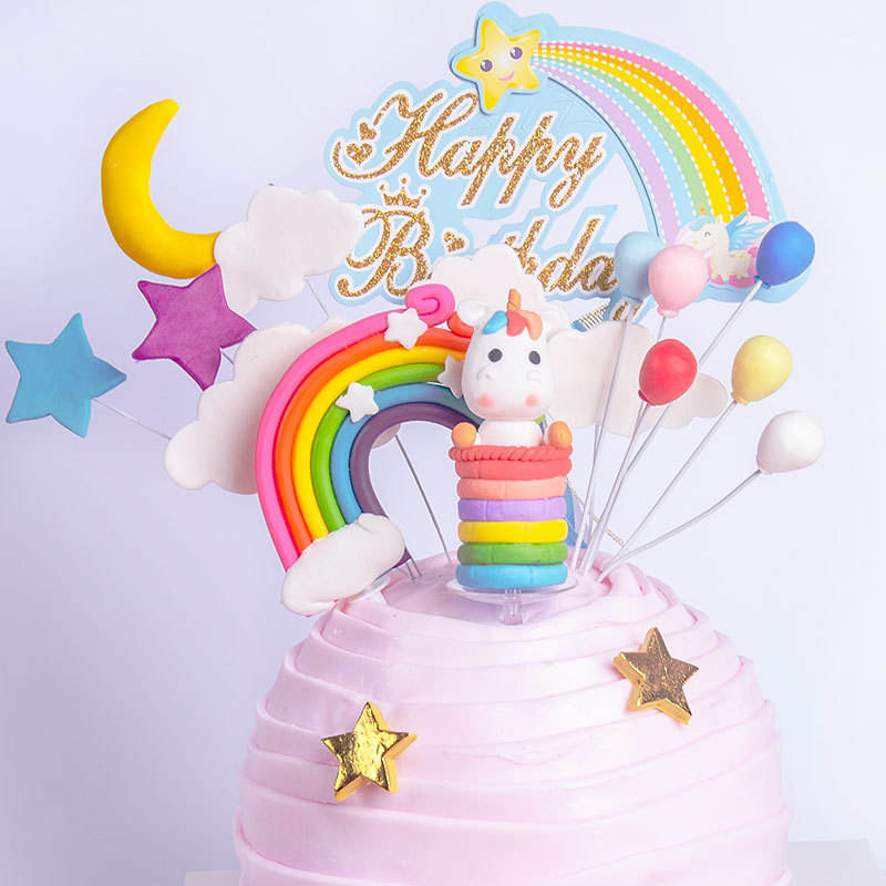 Plug-In suave arcilla unicornio dibujos animados niños cumpleaños adornos Fondant hornear postre Mesa insertar pastel Topper Decoración