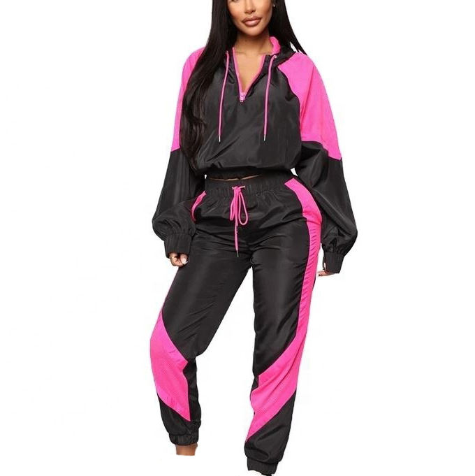 Más tamaño 2025 nuevo logotipo personalizado mujeres chándal 2 piezas trajes cortavientos ligero cremallera completa Sudadera con capucha Jogger rompevientos conjunto