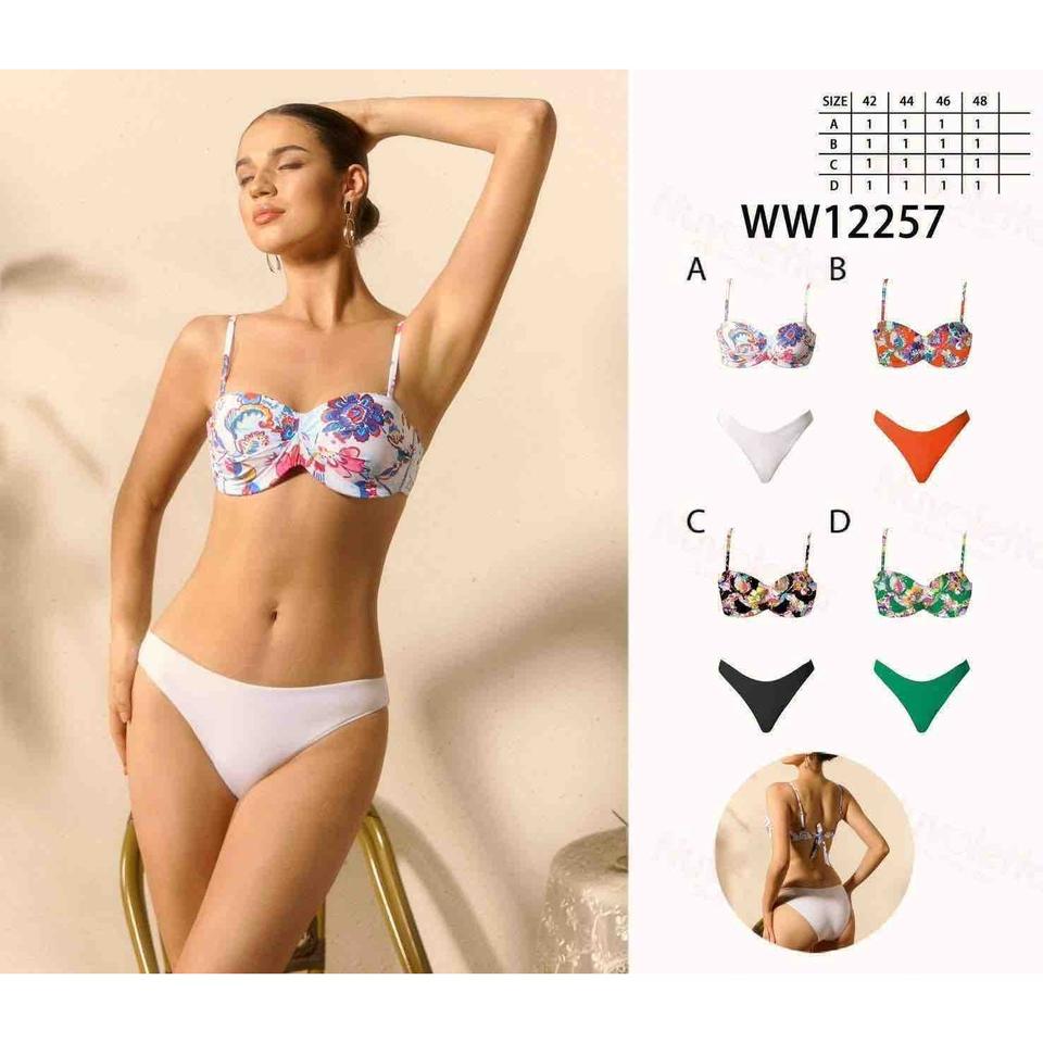Conjunto de bikini de talla grande con estampado floral, top push-up con parte inferior blanca, traje de baño WW12257, talla 42 44 46 48