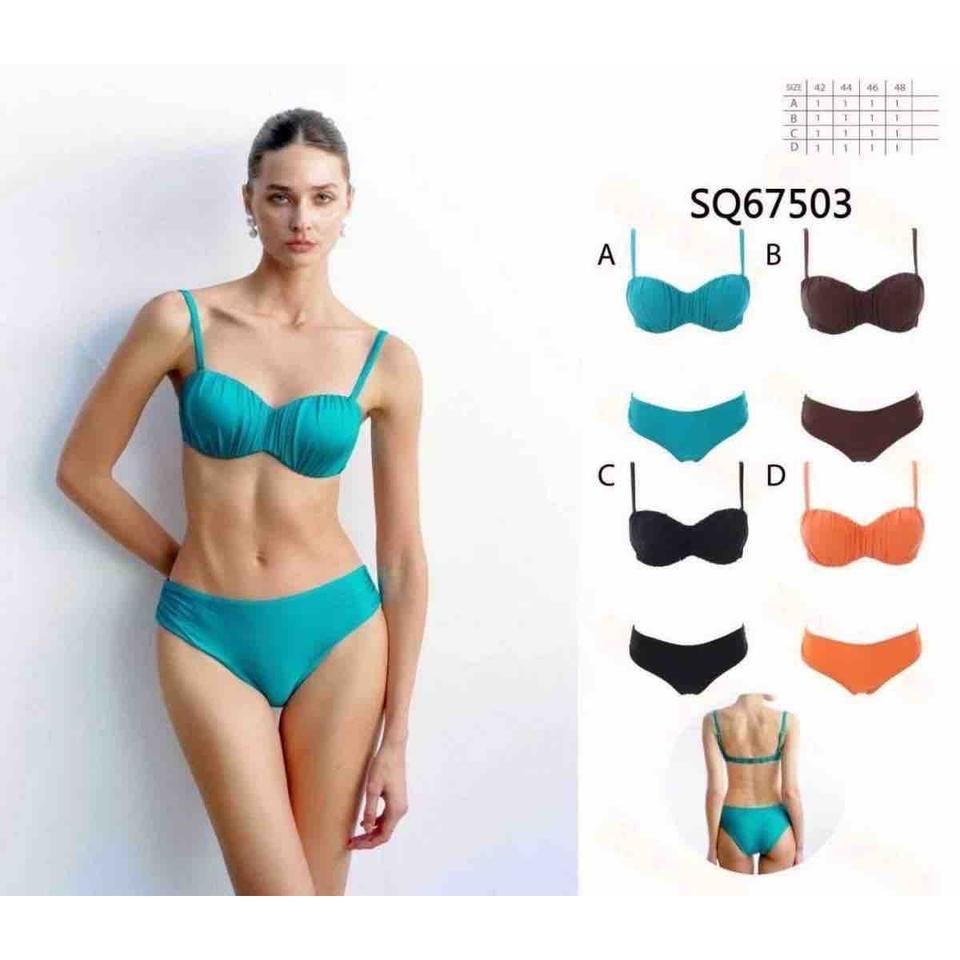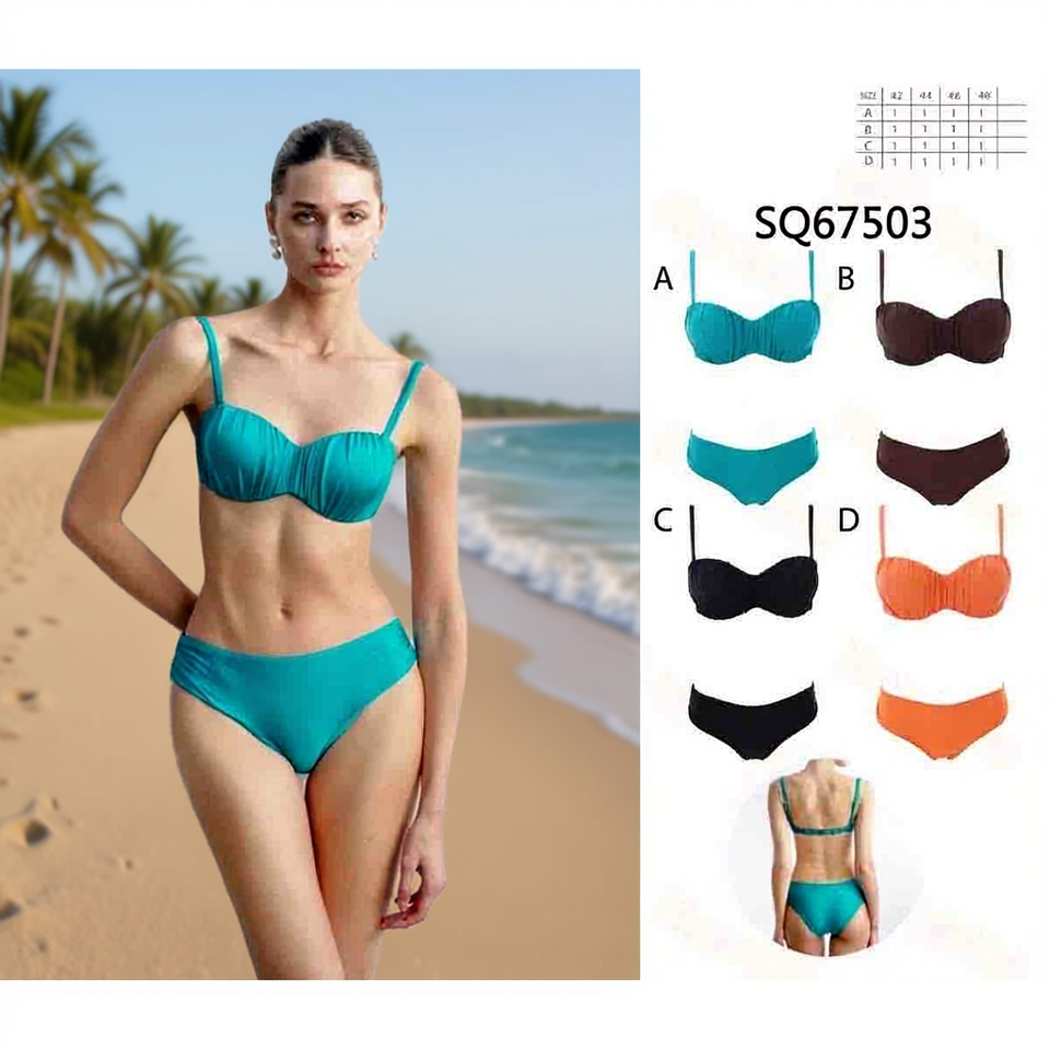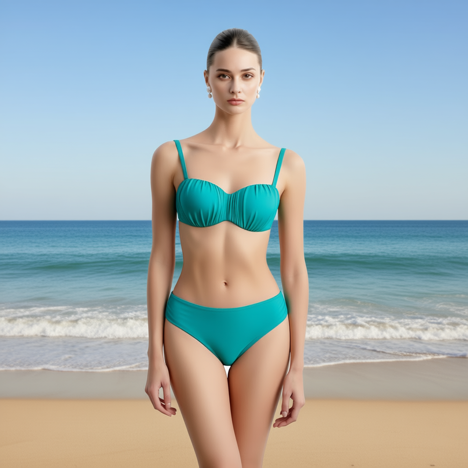 Conjunto de Bikini HDJ Tallas Grandes, Control de Abdomen, Traje de Baño Conservador, Bandeau, Hipsters, Color Sólido, Elástico, 2 Piezas, Ropa de Playa para Mujer