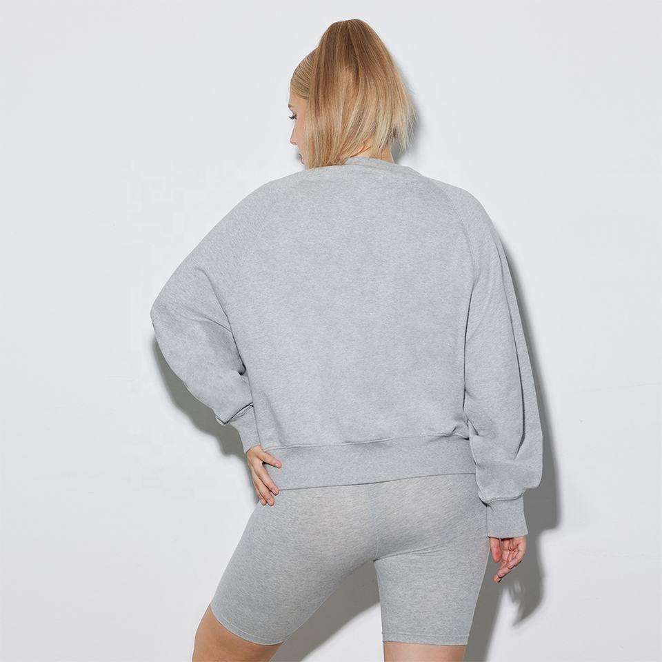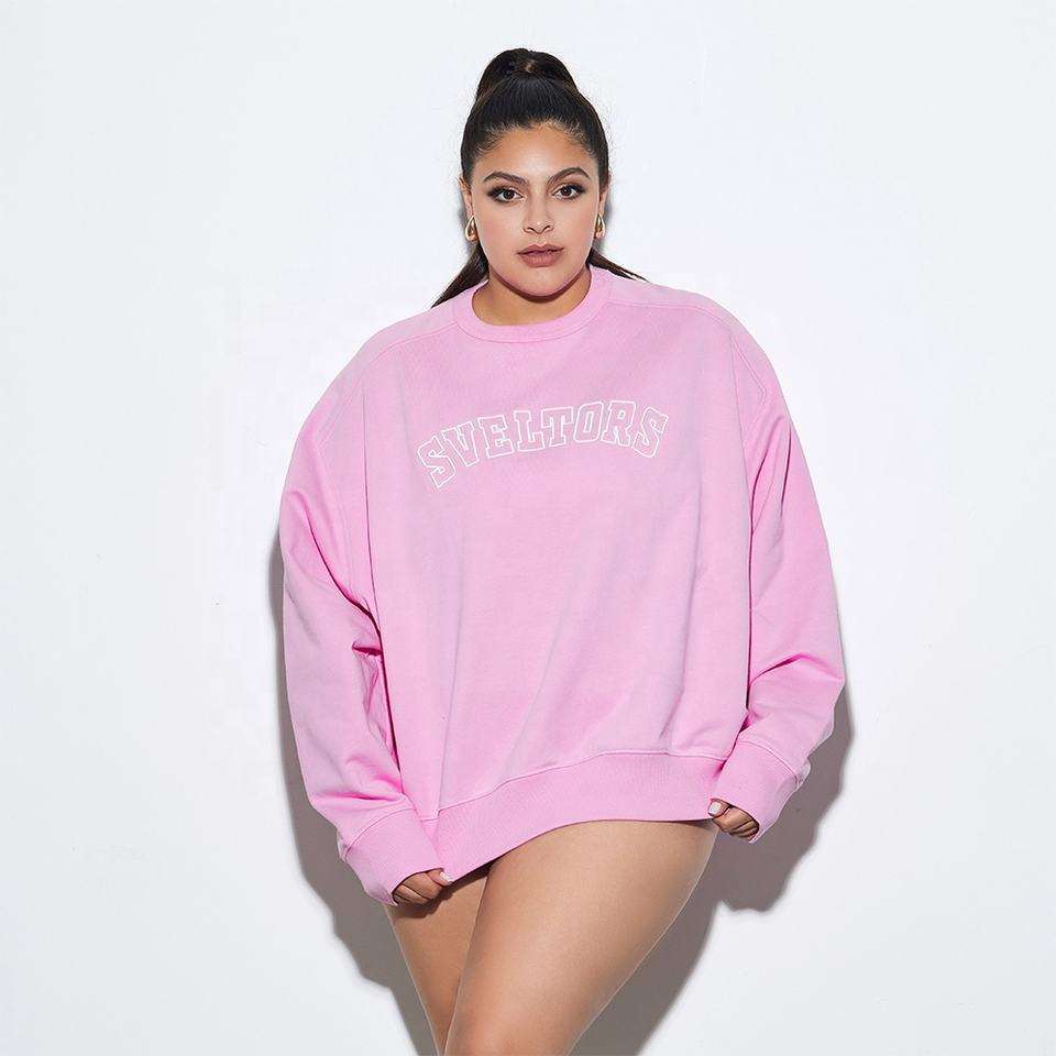 Sudadera Rosa de Algodón Acanalado Oversize para Mujer con Hombros Caídos, Cuello Redondo y Logotipo de Letras Bordado Personalizado Tallas Grandes