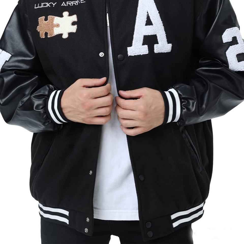 Chaquetas universitarias para hombre con logotipo personalizado de talla grande para la universidad chaquetas con letras de Invierno en Blanco al por mayor con posición de logotipo frontal