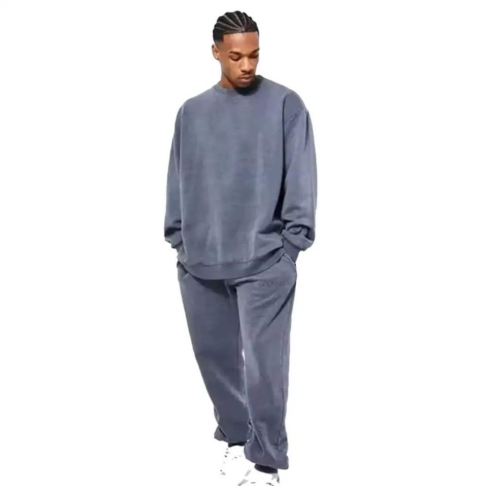 Más tamaño personalizado de gran tamaño lavado ácido secado rápido Color sólido sudor 100% algodón hombres chándales