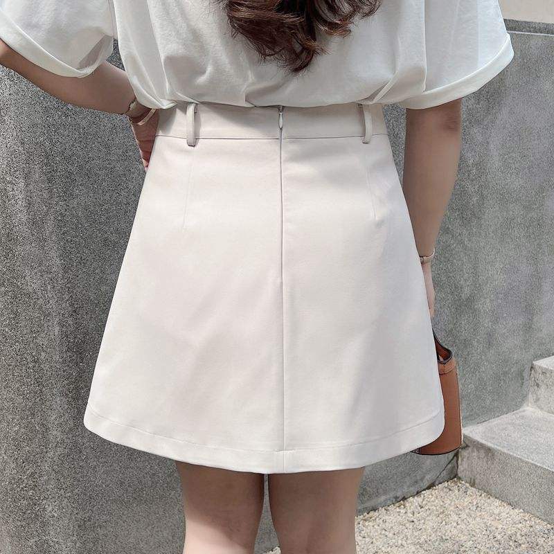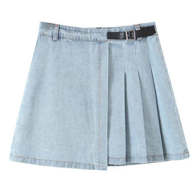 Minifalda vaquera de cintura alta talla grande color sólido albaricoque para mujer N7978