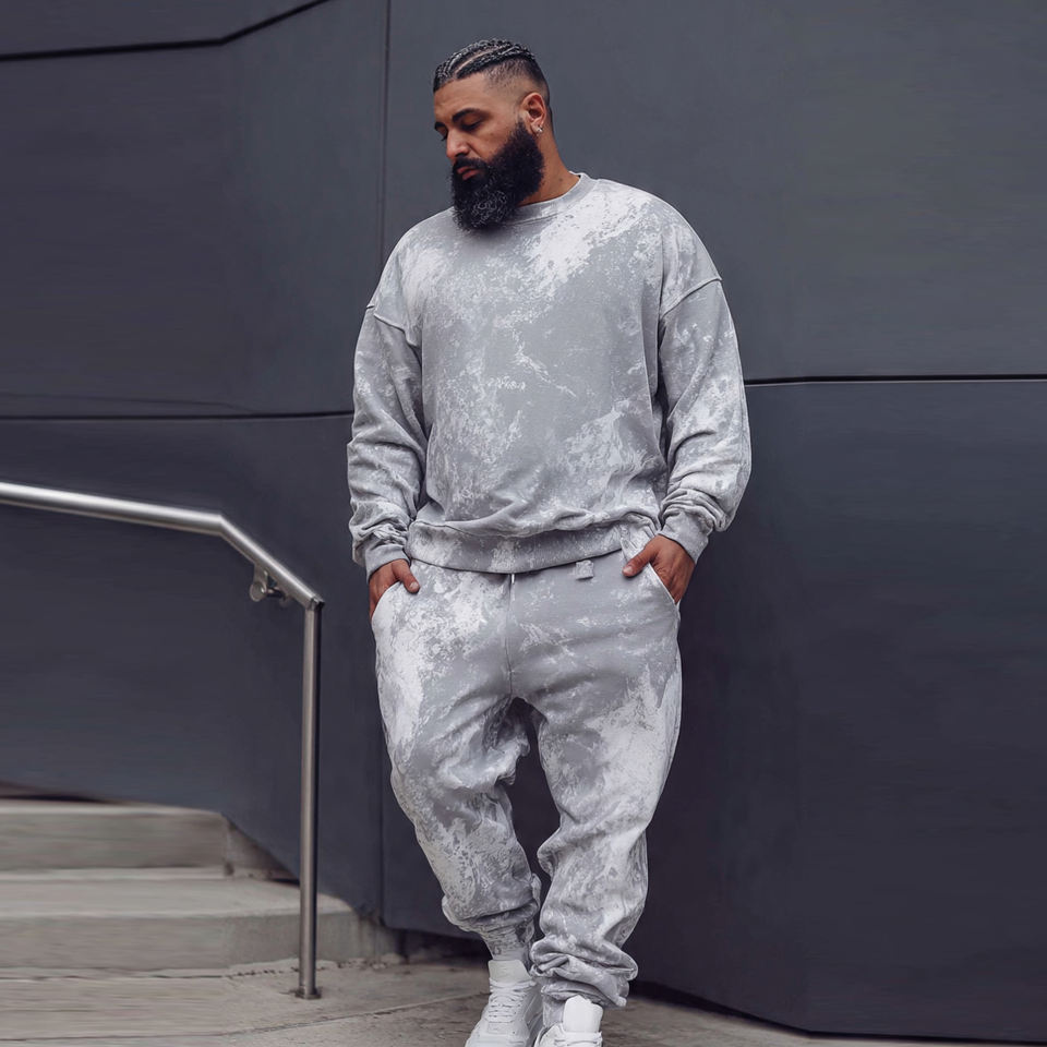 Conjunto Deportivo para Hombre Talla Grande, Sudadera con Hombros Caídos y Cuello Redondo, Pantalones Deportivos Holgados