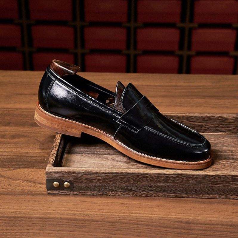 Mocasines Penny con Cordones y Punta Cuadrada Estilo Británico para Hombre Tallas Grandes, Ligeros, Transpirables, con Diseño de Parches, Casuales de Negocios, Hechos a Mano
