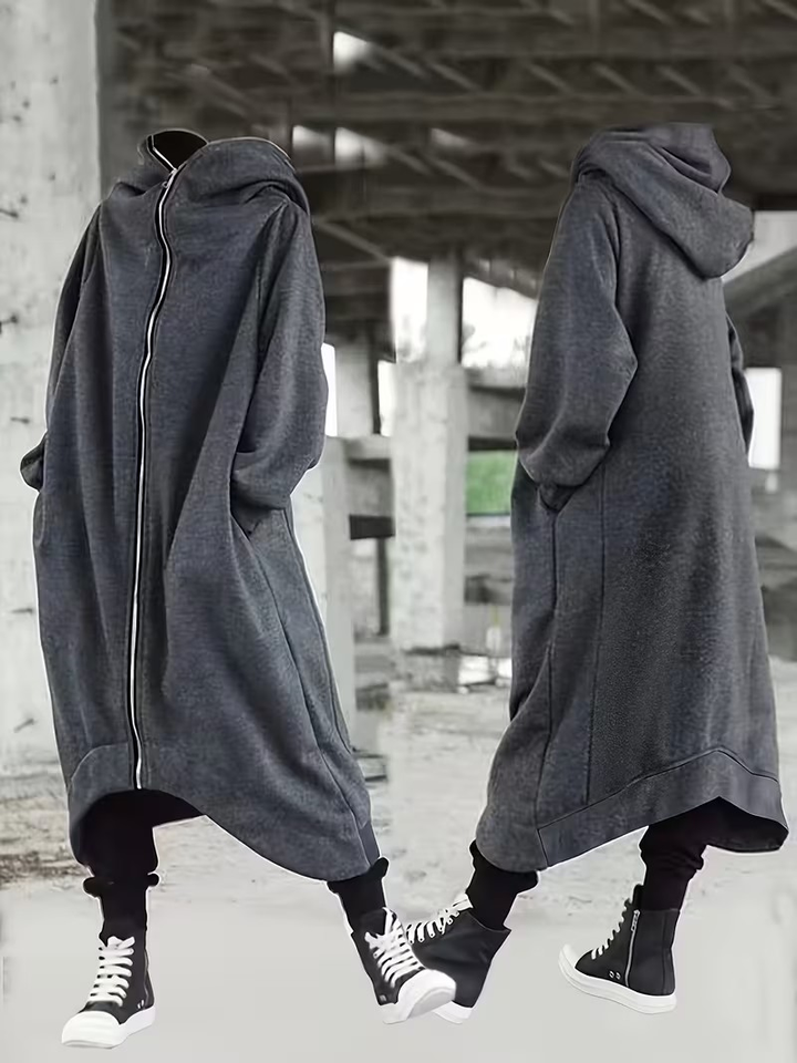 Plus Size New Washed Zip-Up Hoodie with Curved Hem Deep Gray Stylish Casual Design Pockets for Warmth ODM Service 100% Cotton