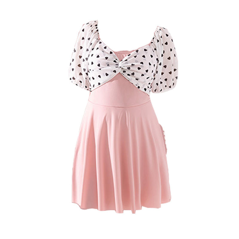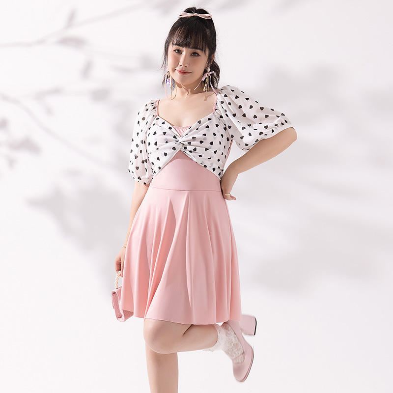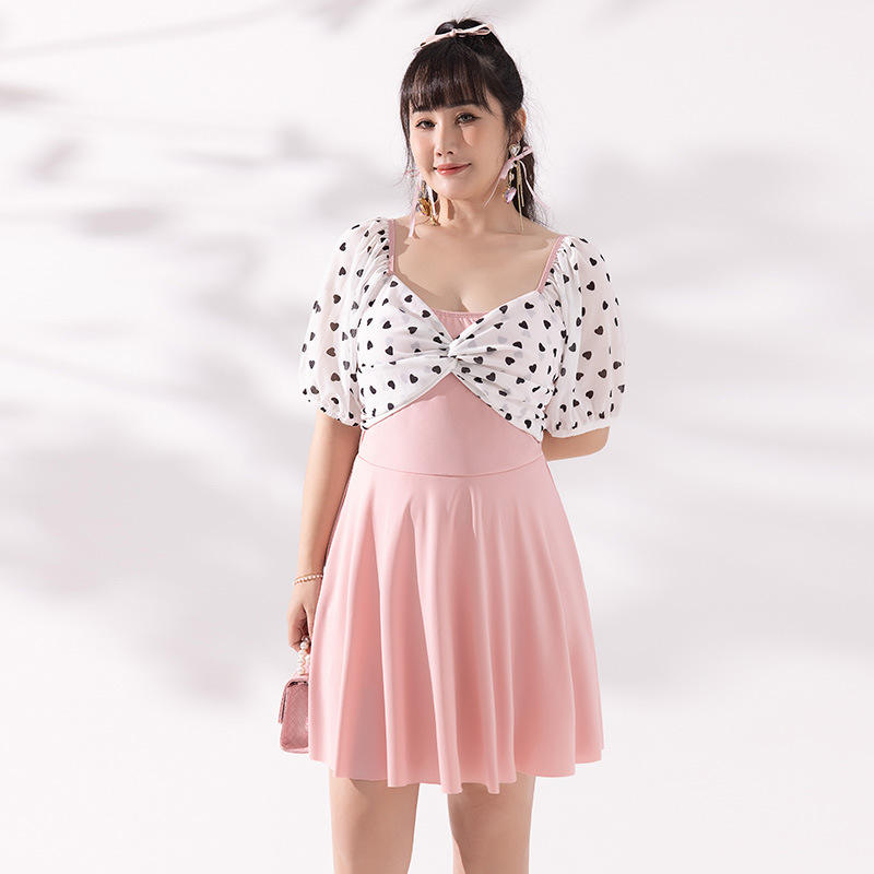 Traje de baño de una pieza de talla grande para mujer, traje de baño rosa con estampado de puntos y cuello en V para aguas termales y deportes acuáticos
