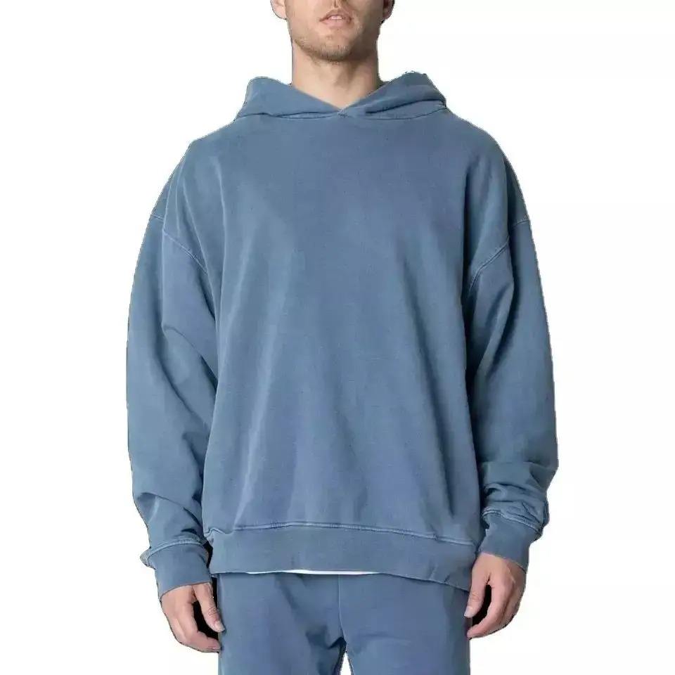 Chaqueta con capucha de talla grande para hombre, Otoño, algodón azul teñido liso, entrenamiento deportivo para hombre, sudaderas con capucha de gran tamaño informales de calle
