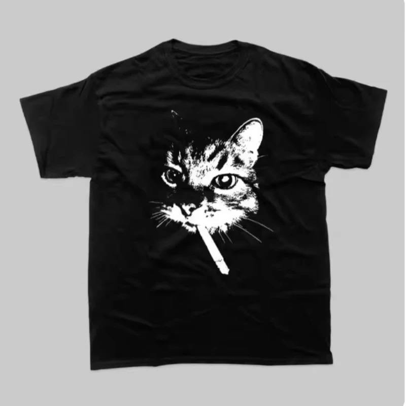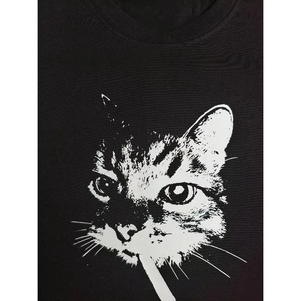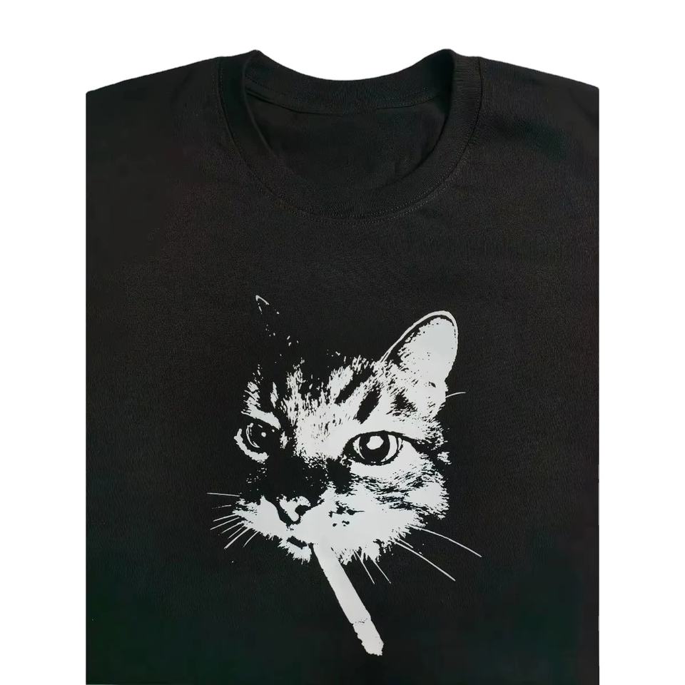 Camiseta de talla grande con estampado retro de gato callejero fumando, de verano, a la moda, de alta calidad, de manga corta, informal, deportiva, holgada, tipo jersey.