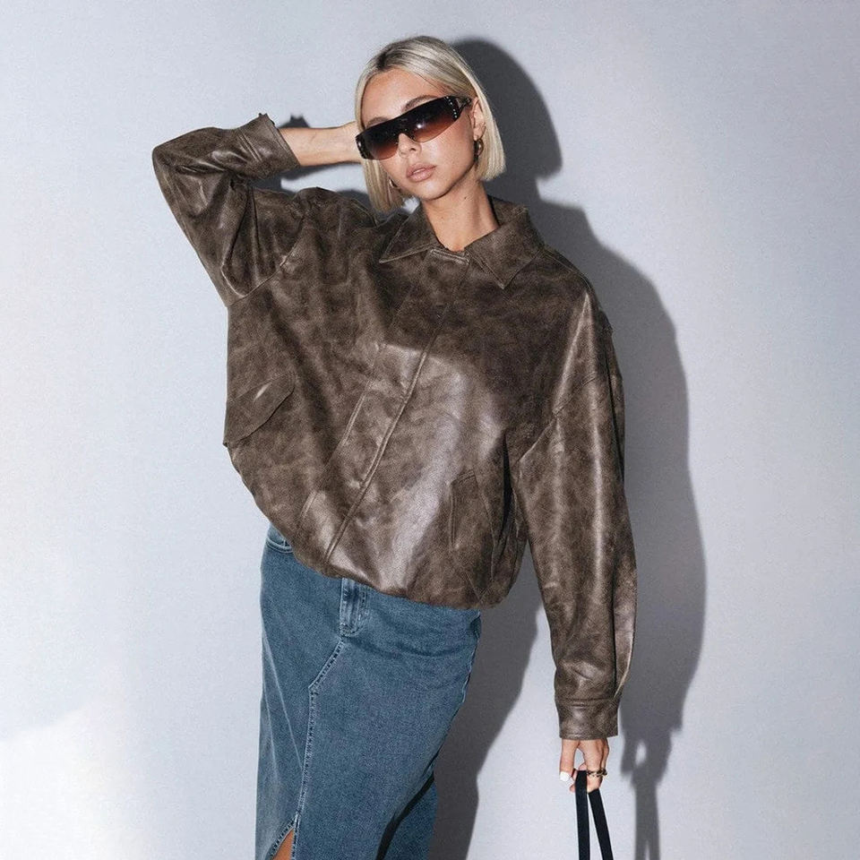 Nombre del producto:Mujer Chaquetas de cuero de talla grande