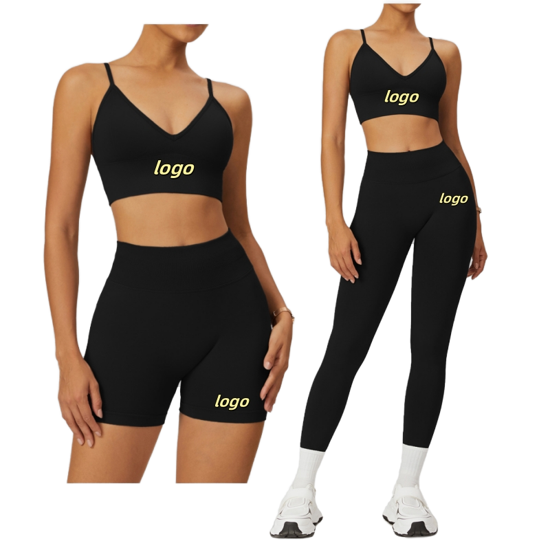 De talla grande para gimnasio, correr, Fitness, Yoga, conjunto 95% algodón, 5% Spandex, sujetador Halter a cuadros sólido y mallas largas OEM