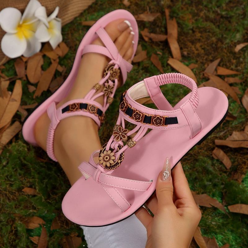 Sandalias Romanas de Mujer Tallas Grandes con Punta Abierta, Planas, Florales, con Pedrería, Transpirables, para Playa y Verano - Precio Especial al por Mayor