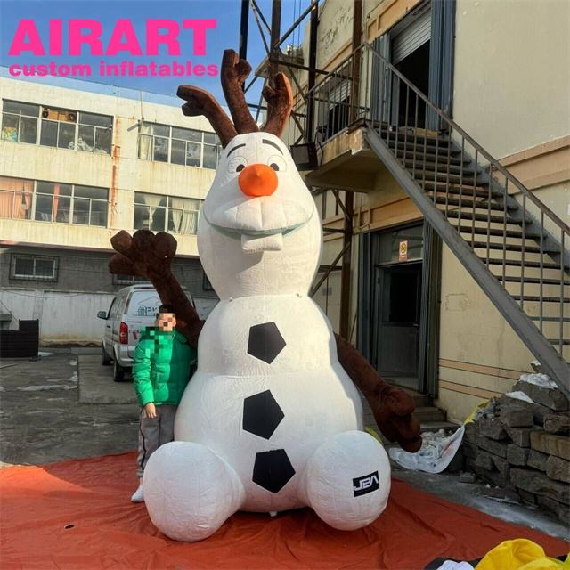 Muñeco de nieve de personaje de dibujos animados inflable de felpa, modelo Olaf, mascota de ciervo de Navidad inflable personalizada para exhibición de negocios