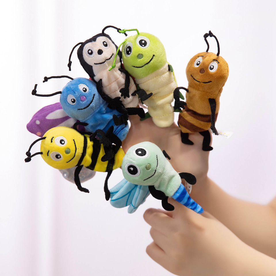 Marionetas de Mano de Insectos de Peluche: Oruga y Mariquita, Relleno de Algodón PP, Juguetes de Dedo para Niños, Ideales para Contar Historias Familiares y Juegos de Rol