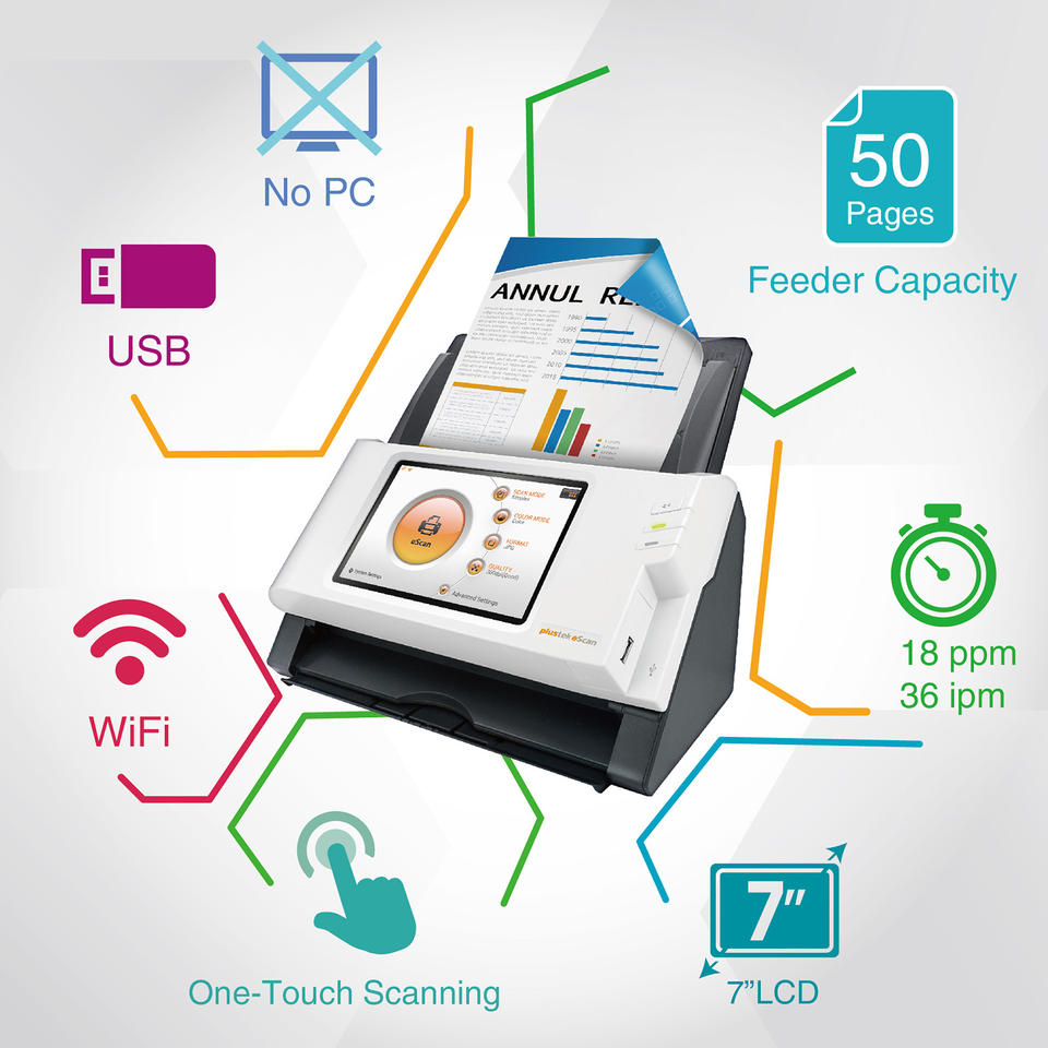 Plustek red de alta velocidad de escáner de eScan A350 esencial-PC-menos inalámbrico a la carpeta de red/correo electrónico/nube/FTP/PC/Mac/USB