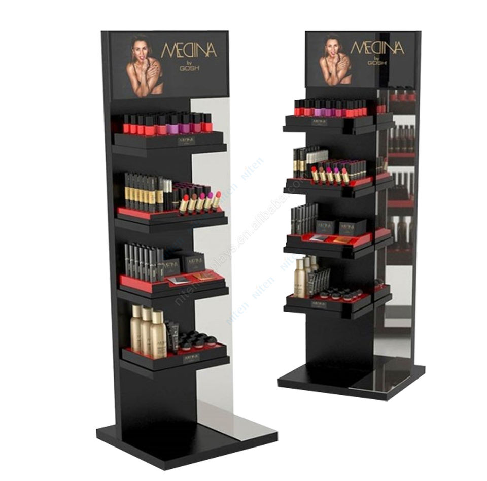 Exhibidor de Maquillaje de Madera Contrachapada, Exhibidor de Cosméticos de Madera MDF para Tienda, Exhibidores de Madera para Venta al por Menor