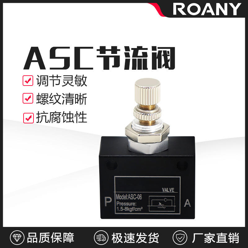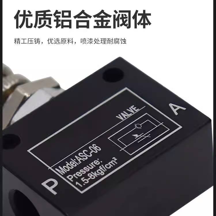 Válvula de Control de Flujo de Gas Neumática Unidireccional Asc 06, 1,5-8 kgf cm², Tamaño de Puerto de 1/4 Pulgada