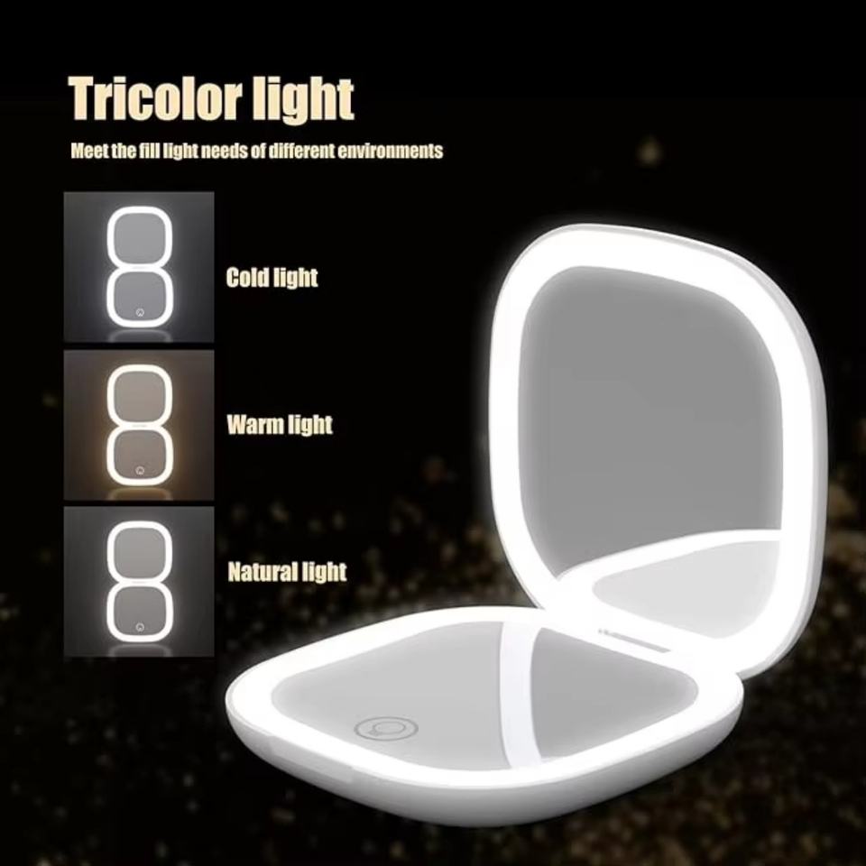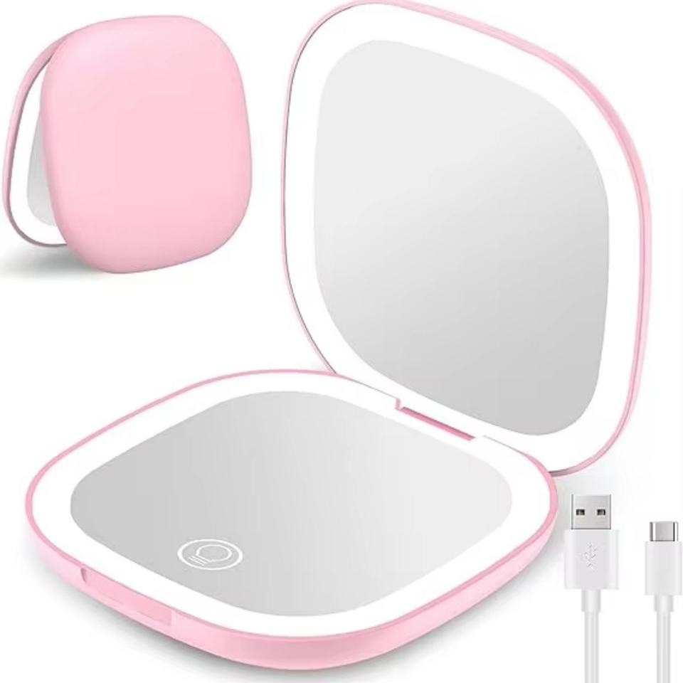 Espejo de Maquillaje Compacto Recargable con Luces LED, 5x 10x Aumento, Espejo Cosmético de Mano