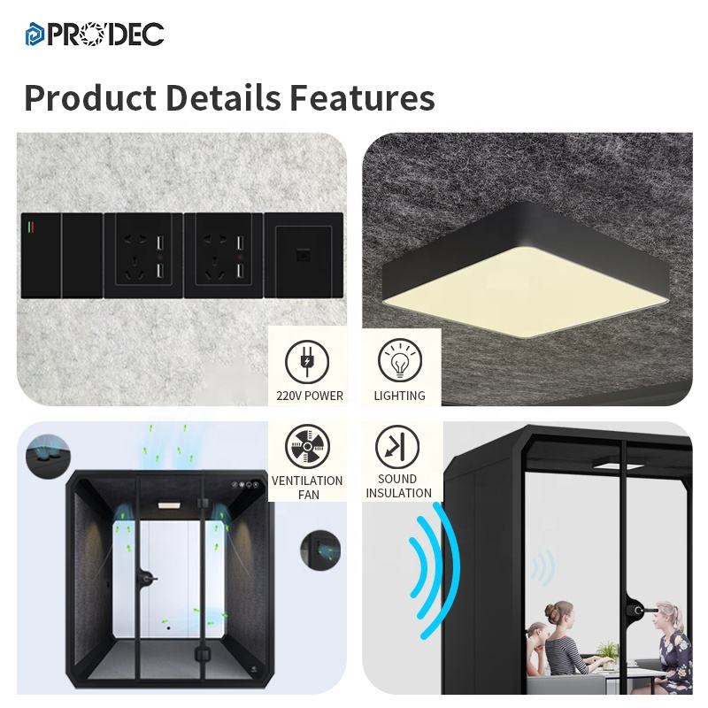 Cabina de Oficina Privada Insonorizada con Ruedas, Marco de Aluminio, Iluminación LED, Diseño Modular, Marca Prodec
